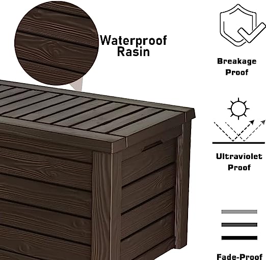 Verleihen Sie Ihrem Garten oder Ihrer Terrasse Stil, Stauraum, Komfort und Bequemlichkeit. Die robuste Aufbewahrungsbox bietet ein großzügiges Fassungsvermögen von 570 Litern (150 Gallonen). Sie dient gleichzeitig als bequeme Gartenbank für zwei Erwachsene und fügt sich mit ihrer zeitlosen, natürlichen Holzoptik perfekt in selbst die elegantesten Außenbereiche ein. Die Gartenbank ist aus strapazierfähigem und wetterbeständigem Polypropylen-Kunststoff gefertigt, wodurch sie pflegeleicht und robust genug ist, um auch extremen Witterungsbedingungen standzuhalten. Dank des automatischen Öffnungsmechanismus lässt sie sich mühelos öffnen und schließen. In der Box finden selbst Ihre größten Gartengeräte Platz und bleiben trocken und gut belüftet.